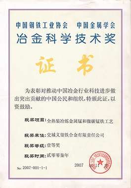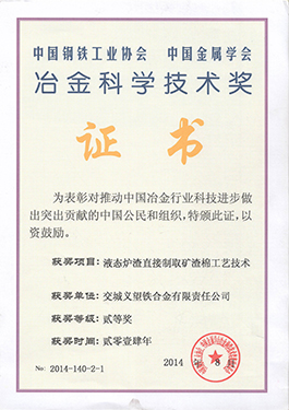 公司以學習、研究、創(chuàng)新為企業(yè)發(fā)展理念,不斷追求技術進步,擁有專利49項,公司核心技術“全熱裝冶煉金屬錳及微碳錳鐵新工藝”獲冶金科學技術獎一等獎,礦棉核心工藝“液態(tài)廢渣制取礦棉新工藝”獲冶金科學技術獎二等獎。2012年公司通過山西省高新技術企業(yè)認定,《富錳渣電爐冶煉工藝》等三個創(chuàng)新項目獲山西省科學技術獎;公司始終關注行業(yè)技術進步,積極參與行業(yè)標準的制修訂,多年來參與了《金屬錳》、《微碳錳鐵》、《錳氮合金》等多個國家、行業(yè)標準的制修訂工作,公司2013年主持修訂了《錳鐵》國家標準并獲準頒布。