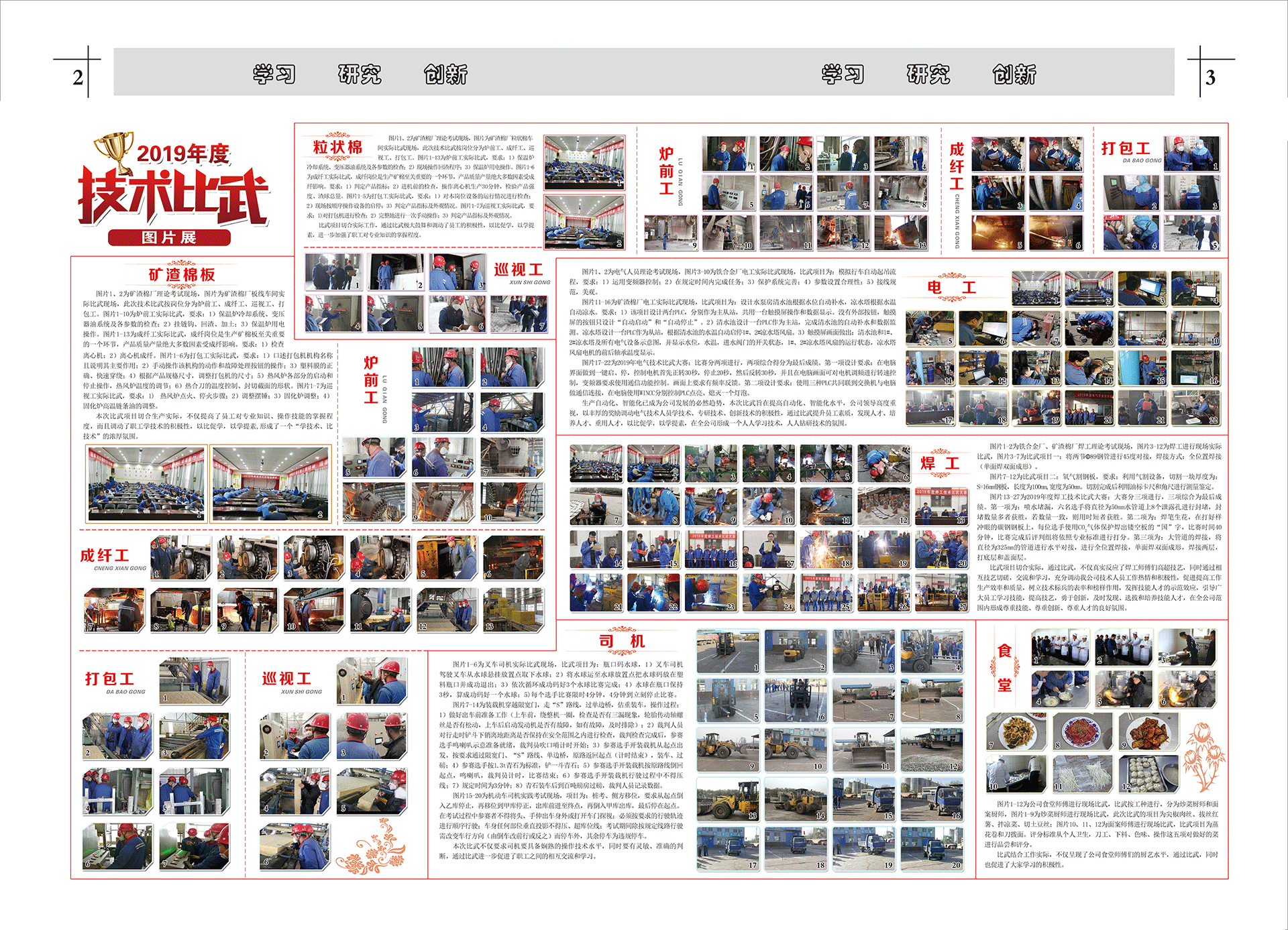 圖片1、2為礦渣棉廠理論考試現(xiàn)場,圖片為礦渣棉廠粒狀棉車間實際比武現(xiàn)場,此次技術比武按崗位分為爐前工、成纖工、巡視工、打包工。