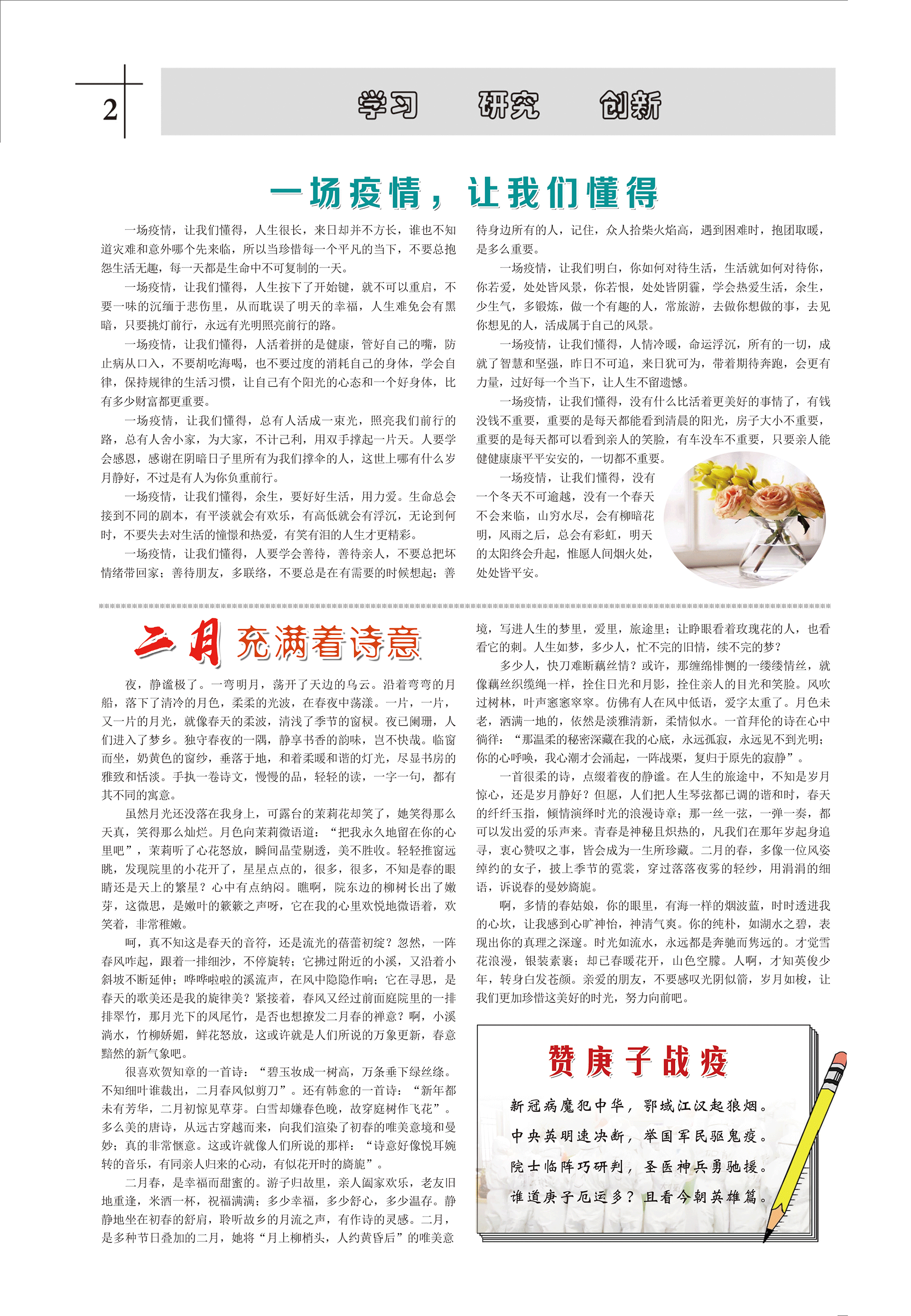 新冠病魔犯中華,鄂域江漢起狼煙。 中央英明速?zèng)Q斷,舉國軍民驅(qū)鬼疫。 院士臨陣巧研判,圣醫(yī)神兵勇馳援。 ?誰道庚子厄運(yùn)多?且看今朝英雄篇。