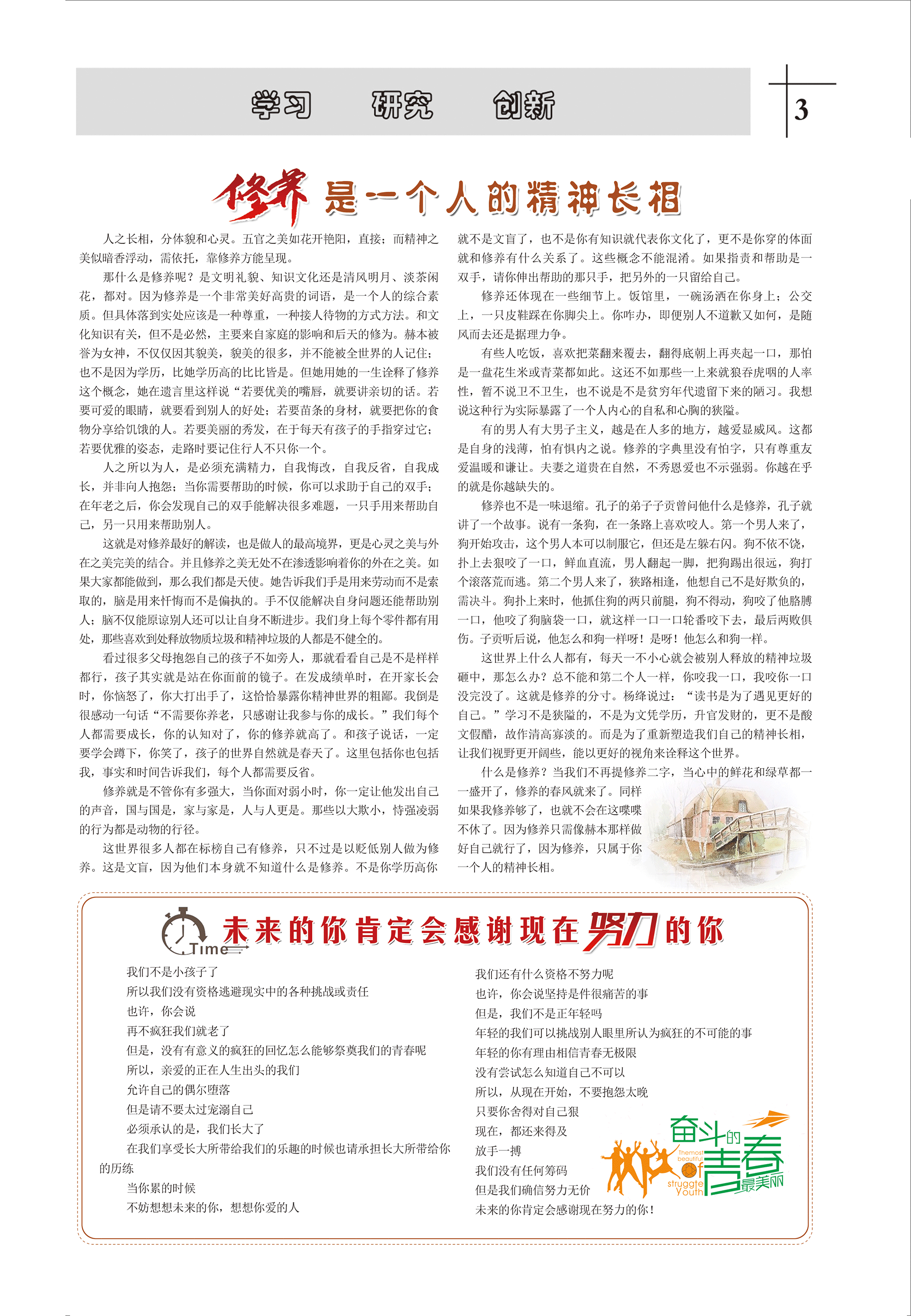 人之長(zhǎng)相,分體貌和心靈。五官之美如花開艷陽,直接;而精神之美似暗香浮動(dòng),需依托,靠修養(yǎng)方能呈現(xiàn)。