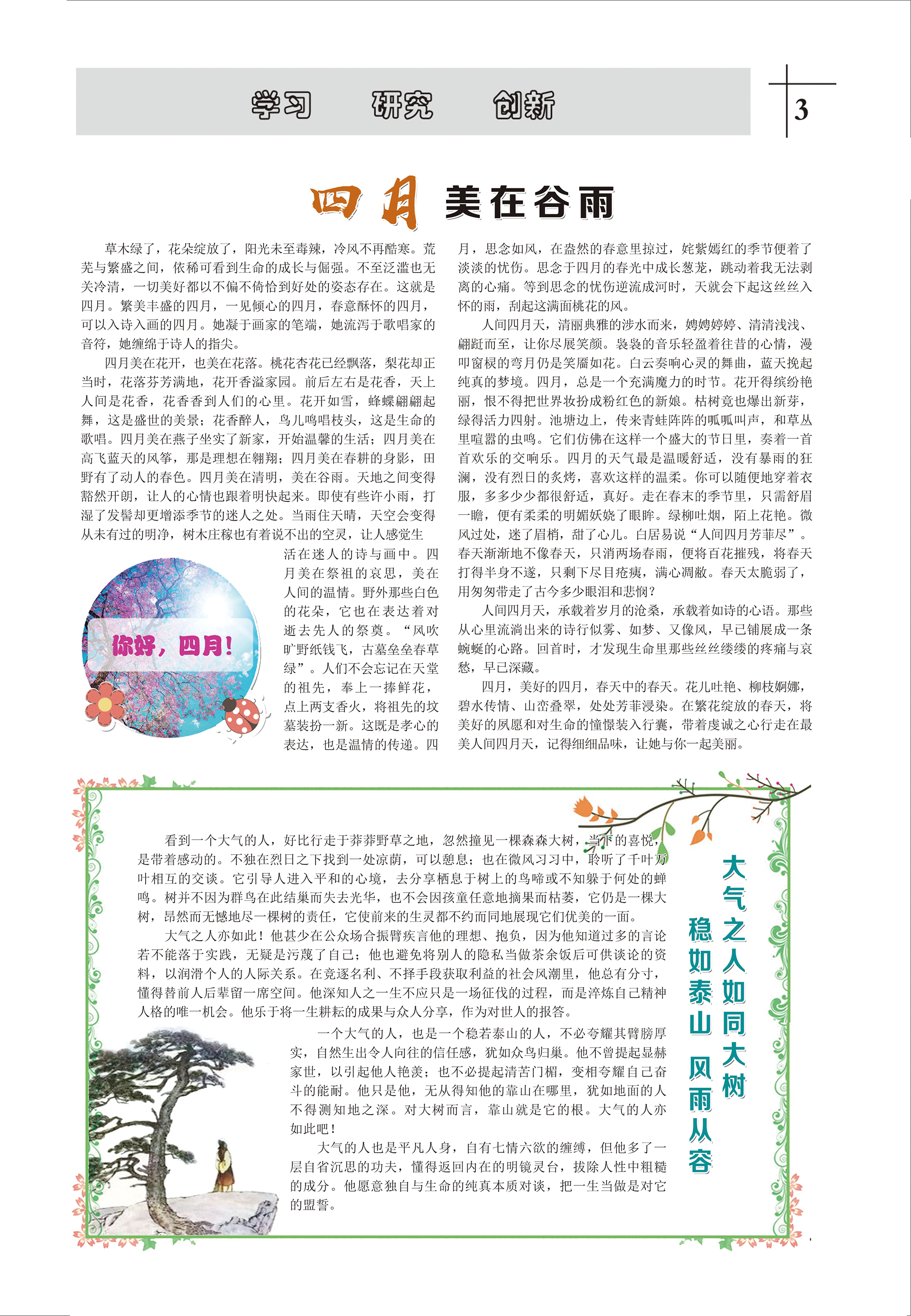 草木綠了,花朵綻放了,陽光未至毒辣,冷風(fēng)不再酷寒?;氖徟c繁盛之間,依稀可看到生命的成長(zhǎng)與倔強(qiáng)。不至泛濫也無關(guān)冷清,一切美好都以不偏不倚恰到好處的姿態(tài)存在。這就是四月。繁美豐盛的四月,一見傾心的四月,春意酥懷的四月,可以入詩(shī)入畫的四月。她凝于畫家的筆端,她流瀉于歌唱家的音符,她纏綿于詩(shī)人的指尖。