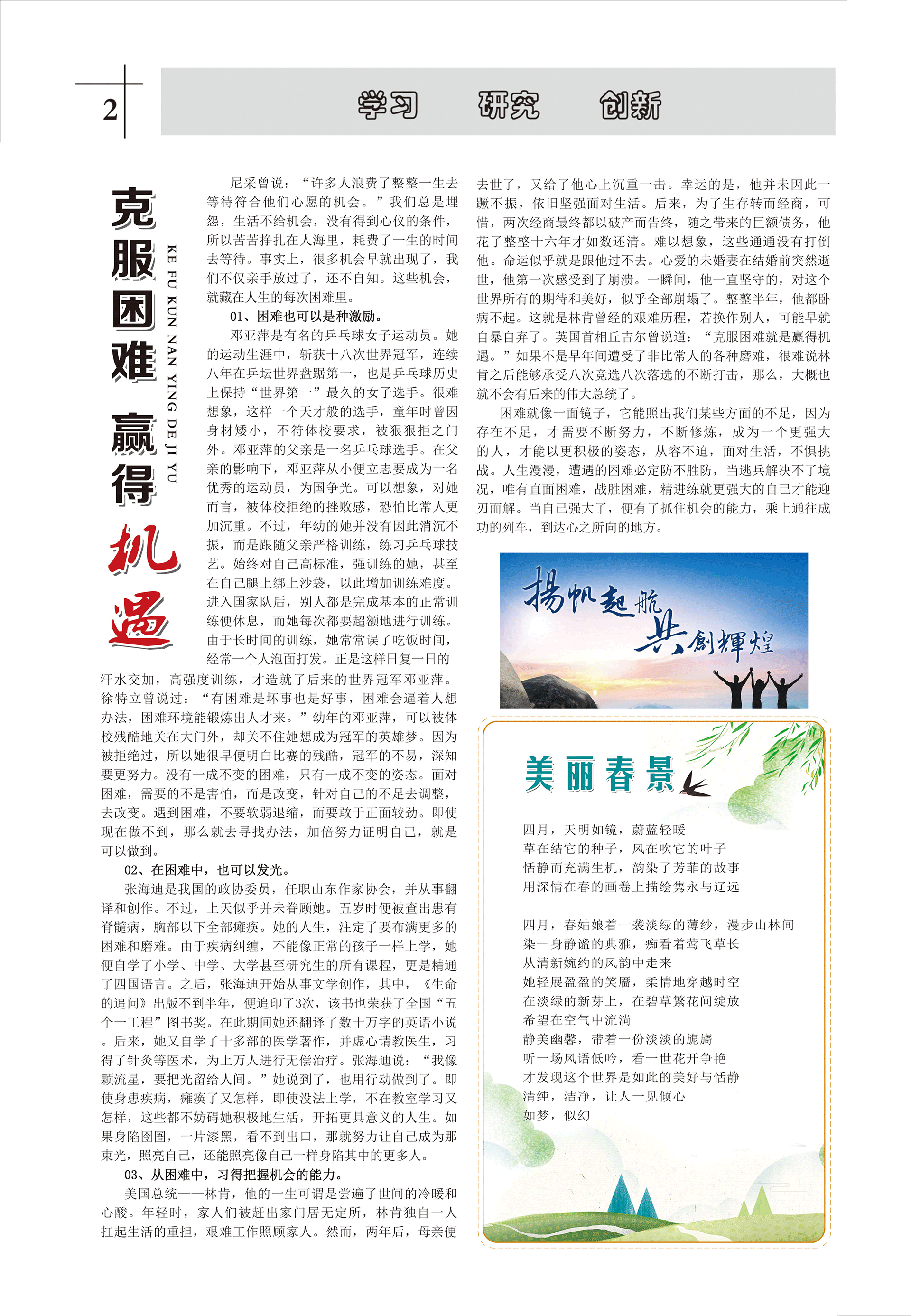 尼采曾說:“許多人浪費(fèi)了整整一生去等待符合他們心愿的機(jī)會(huì)?!蔽覀兛偸锹裨?,生活不給機(jī)會(huì),沒有得到心儀的條件,所以苦苦掙扎在人海里,耗費(fèi)了一生的時(shí)間去等待。事實(shí)上,很多機(jī)會(huì)早就出現(xiàn)了,我們不僅親手放過了,還不自知。這些機(jī)會(huì),就藏在人生的每次困難里。