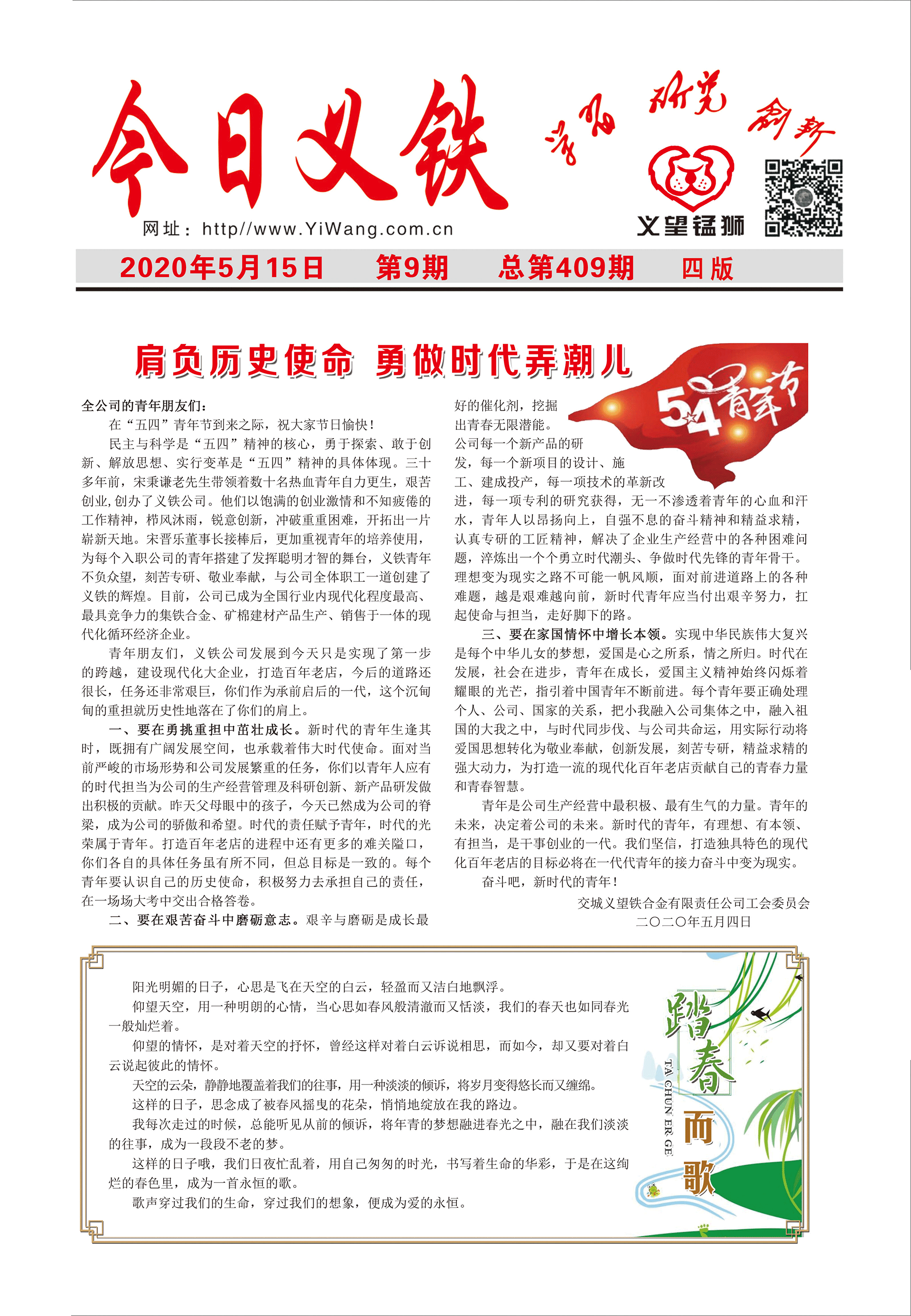 全公司的青年朋友們: 在“五四”青年節(jié)到來之際,祝大家節(jié)日愉快!