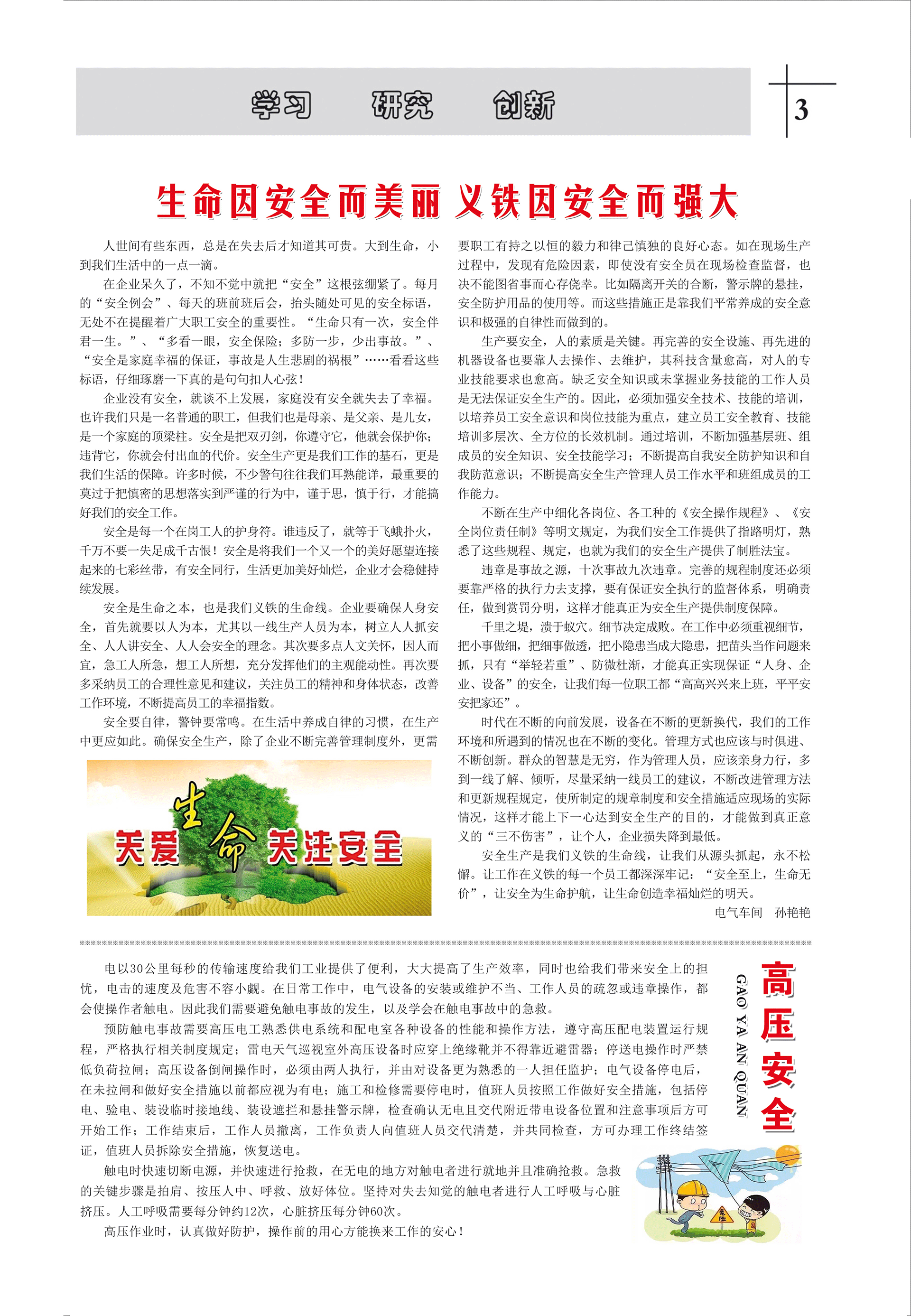 安全是一種關(guān)愛和警告,更是一種對生命的敬畏。防患于未然是每個人必須想到且必須做到的。