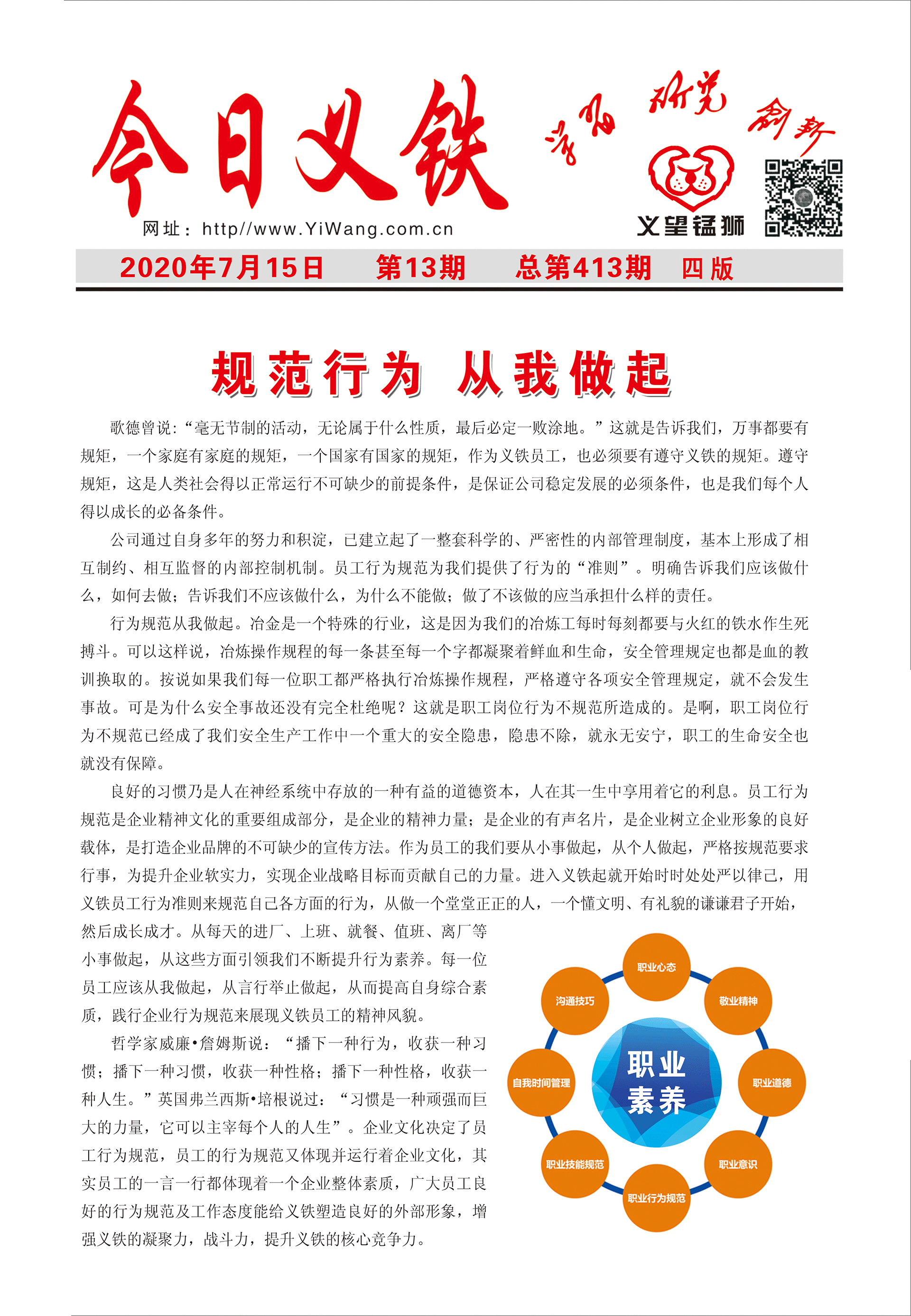 歌德曾說:“毫無節(jié)制的活動,無論屬于什么性質(zhì),最后必定一敗涂地。”這就是告訴我們,萬事都要有規(guī)矩,一個家庭有家庭的規(guī)矩,一個國家有國家的規(guī)矩,作為義鐵員工,也必須要有遵守義鐵的規(guī)矩。