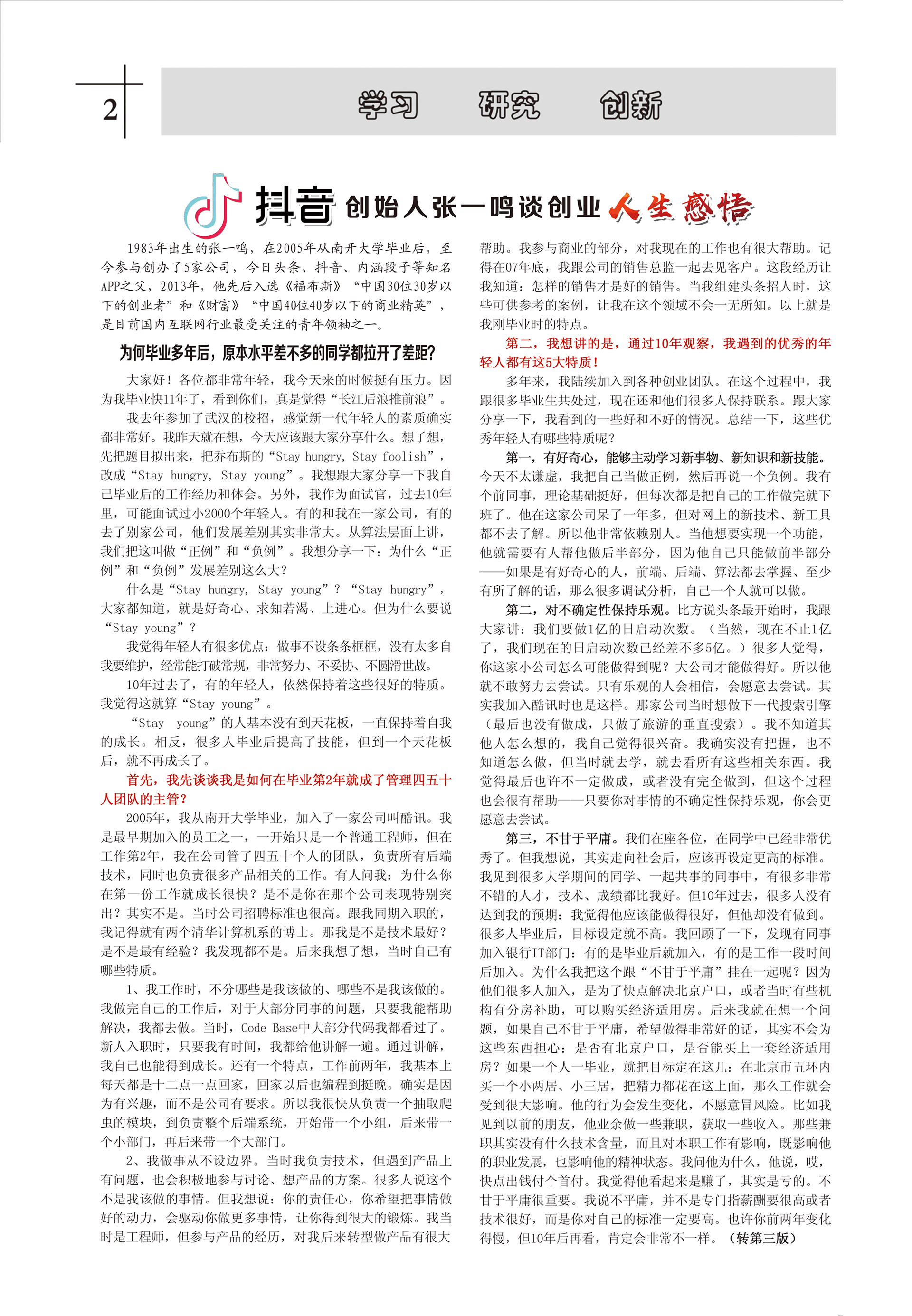 1983年出生的張一鳴,在2005年從南開(kāi)大學(xué)畢業(yè)后,至今參與創(chuàng)辦了5家公司,今日頭條、抖音、內(nèi)涵段子等知名APP之父