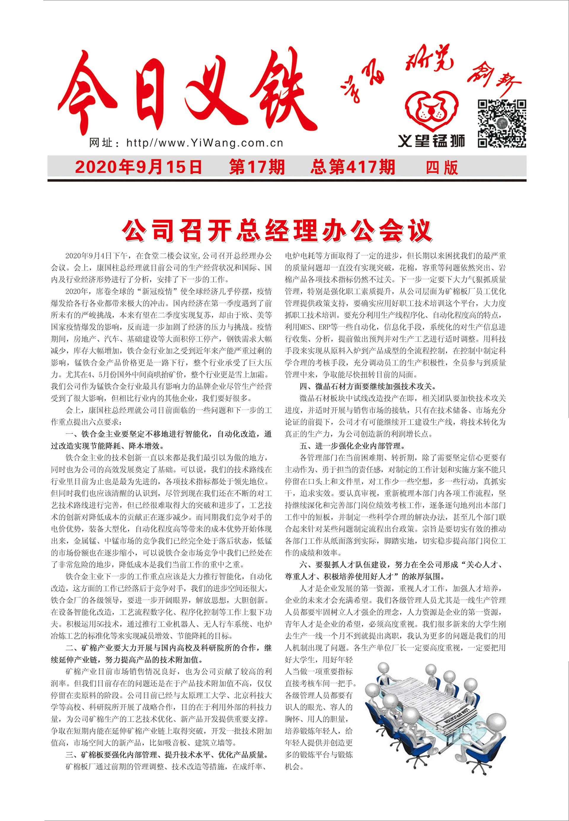 2020年9月4日下午,在食堂二樓會(huì)議室,公司召開(kāi)總經(jīng)理辦公會(huì)議。會(huì)上,康國(guó)柱總經(jīng)理就目前公司的生產(chǎn)經(jīng)營(yíng)狀況和國(guó)際、國(guó)內(nèi)及行業(yè)經(jīng)濟(jì)形勢(shì)進(jìn)行了分析,安排了下一步的工作。