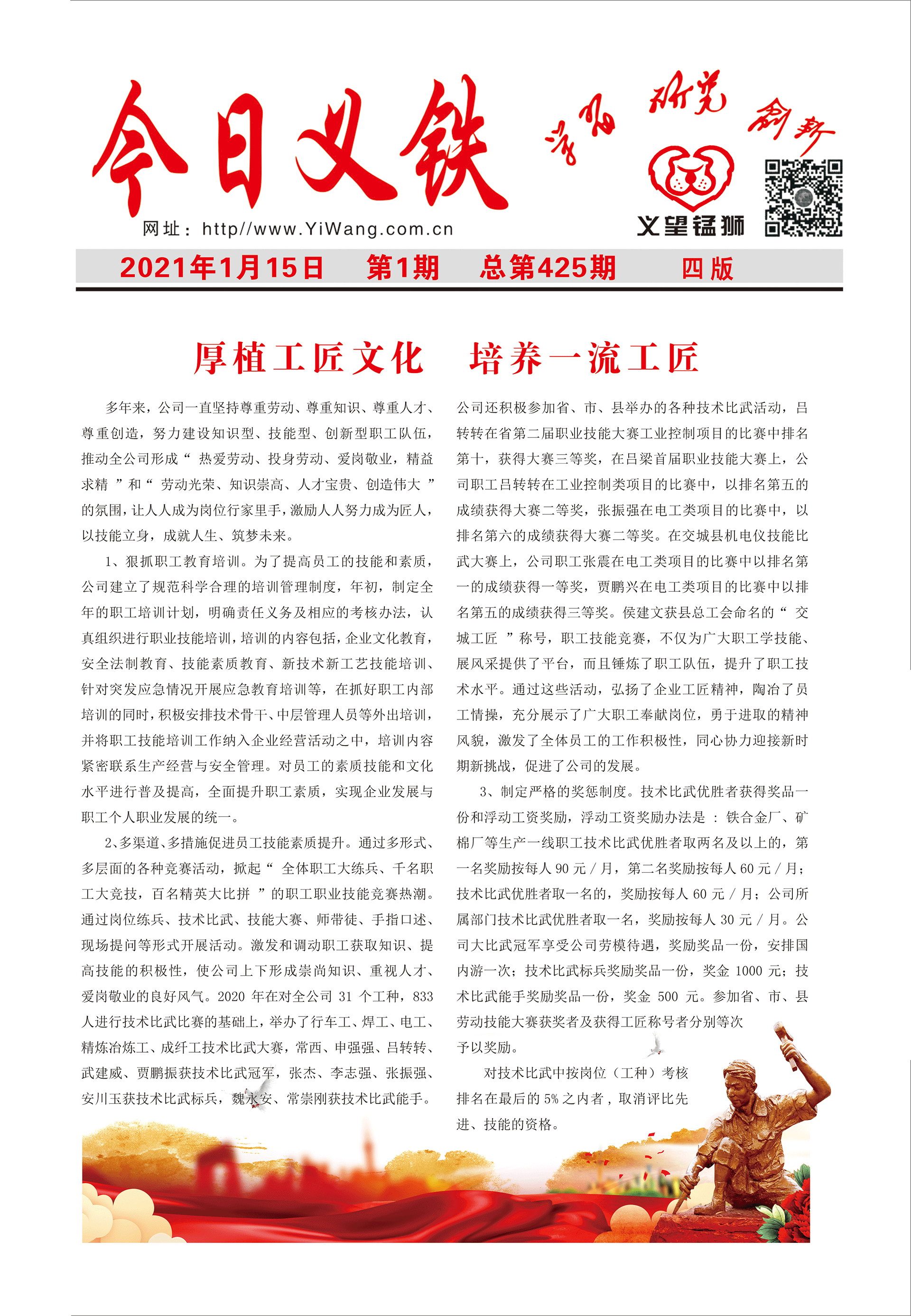 多年來,公司一直堅(jiān)持尊重勞動(dòng)、尊重知識(shí)、尊重人才、尊重創(chuàng)造,努力建設(shè)知識(shí)型、技能型、創(chuàng)新型職工隊(duì)伍,推動(dòng)全公司形成“熱愛勞動(dòng)、投身勞動(dòng)、愛崗敬業(yè),精益求精”和“勞動(dòng)光榮、知識(shí)崇高、人才寶貴、創(chuàng)造偉大”的氛圍,讓人人成為崗位行家里手,激勵(lì)人人努力成為匠人,以技能立身,成就人生、筑夢未來。