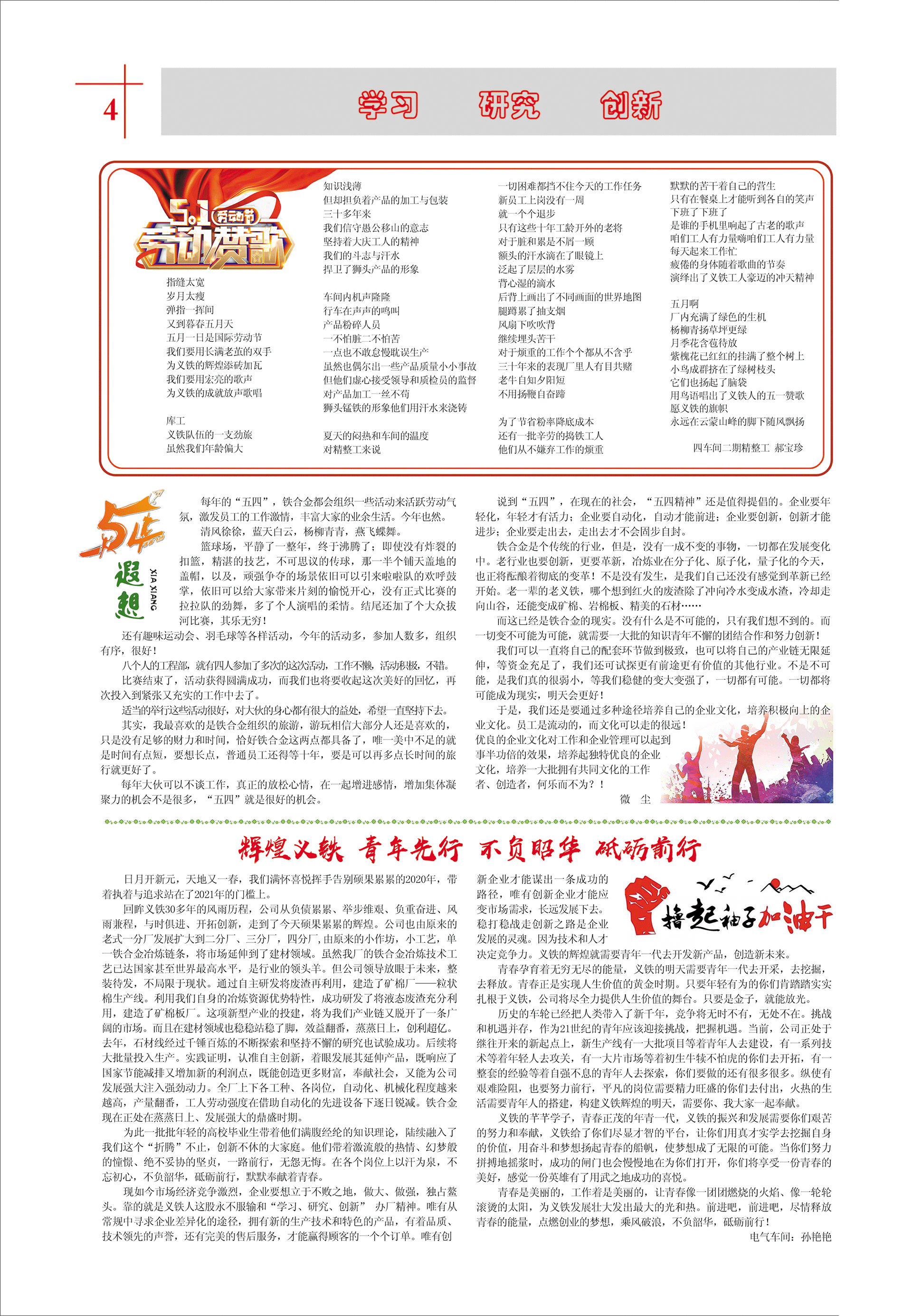 每年的“五四”,鐵合金都會組織一些活動來活躍勞動氣氛,激發(fā)員工的工作激情,豐富大家的業(yè)余生活。今年也然。