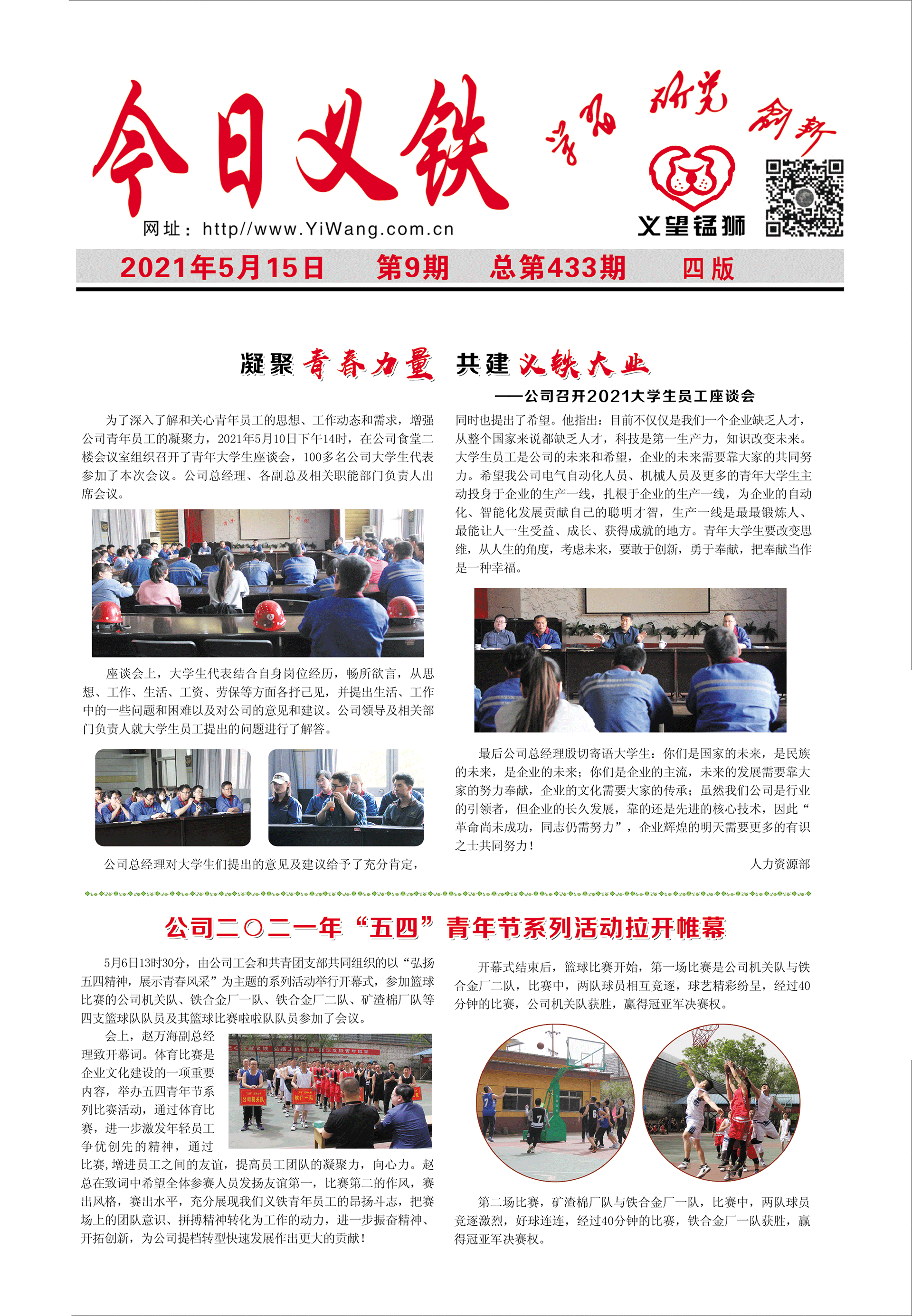 5月6日13時30分,由公司工會和共青團(tuán)支部共同組織的以“弘揚(yáng)五四精神,展示青春風(fēng)采”為主題的系列活動舉行開幕式,參加籃球比賽的公司機(jī)關(guān)隊、鐵合金廠一隊、鐵合金廠二隊、礦渣棉廠隊等四支籃球隊隊員及其籃球比賽啦啦隊隊員參加了會議。